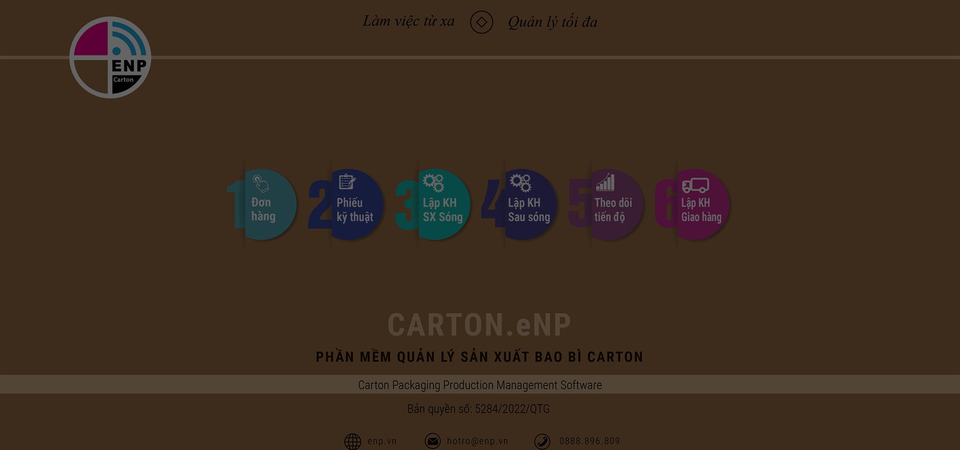 Với phương châm: "Làm việc từ xa, Quản lý tối đa" phần mềm eNP là sự kết hợp hoàn hảo giữa kinh nghiệm của các CEO công ty sản xuất bao bì với các IT chuyên nghiệp eNP là sự sáng tạo theo tư duy quản trị hiện đại, hiển thị trực quan bằng màu sắc, tích hợp trên công nghệ điện toán đám mây, đa nền tảng, đa thiết bị mang lại sự đột phá và phong cách mới trong điều hành sản xuất.